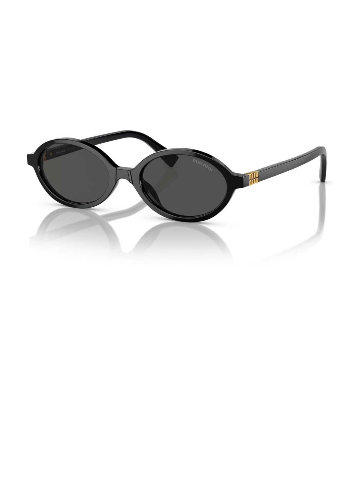 Хит от бренда Miu Miu в форме овала в черном цвете оправы с серой линзой.