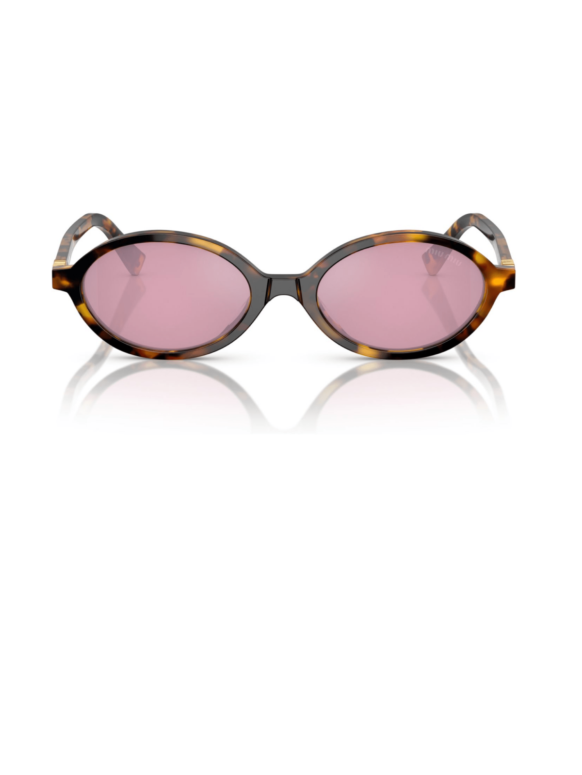 Хит от бренда Miu Miu в форме овала, в роговом цвете оправы с розовой линзой.