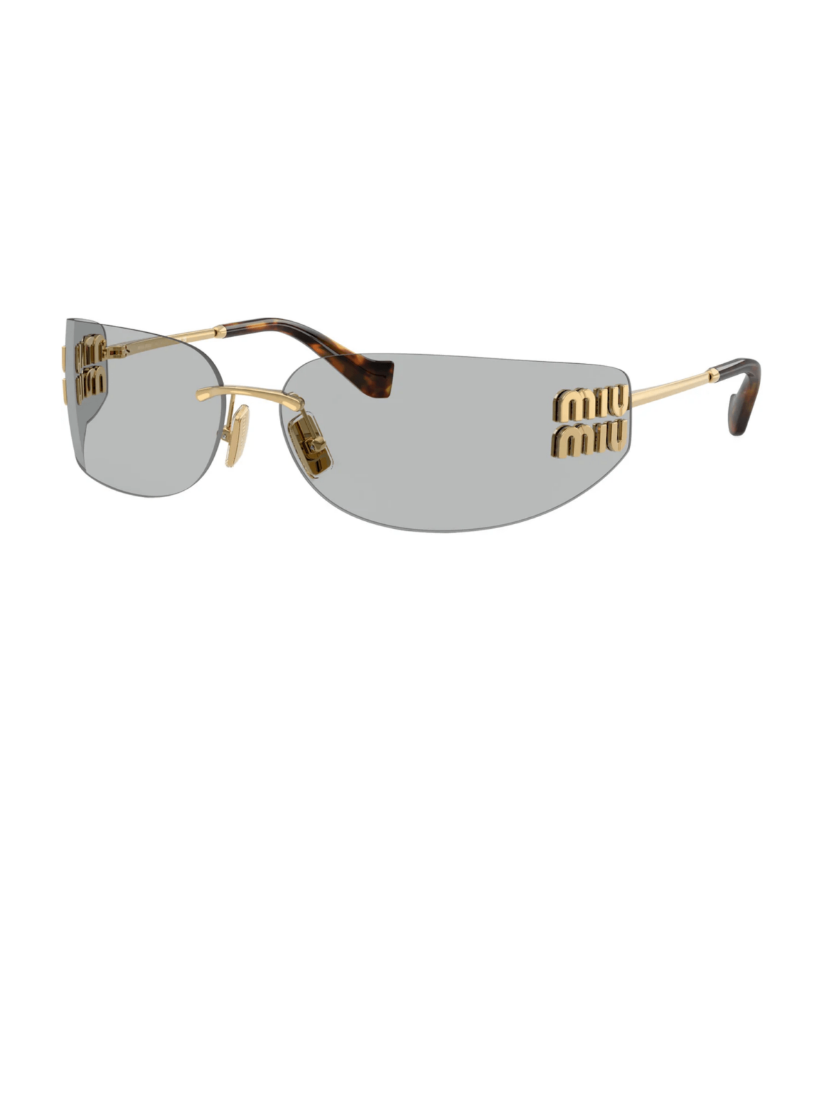 Модель имеет геометрический силуэт с четкими углами — прямоугольная форма с легким наклоном в сторону «маски». Оправа изготовлена ​​из позолоченного металла. Линзы светло-серого оттенка, однотонные. Скобки тонкие, без дополнительного декора – акцент на материале и форме.