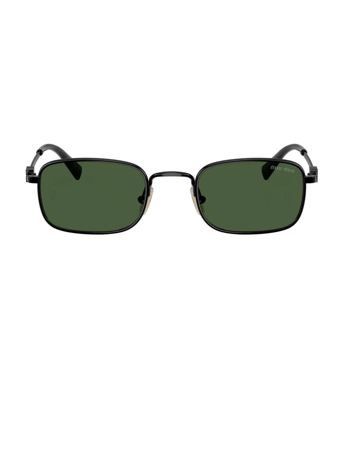 Модель имеет прямоугольный силуэт с четкими контурами. Оправа выполнена из черного металла. Линзы темно-зеленого оттенка, однотонные.