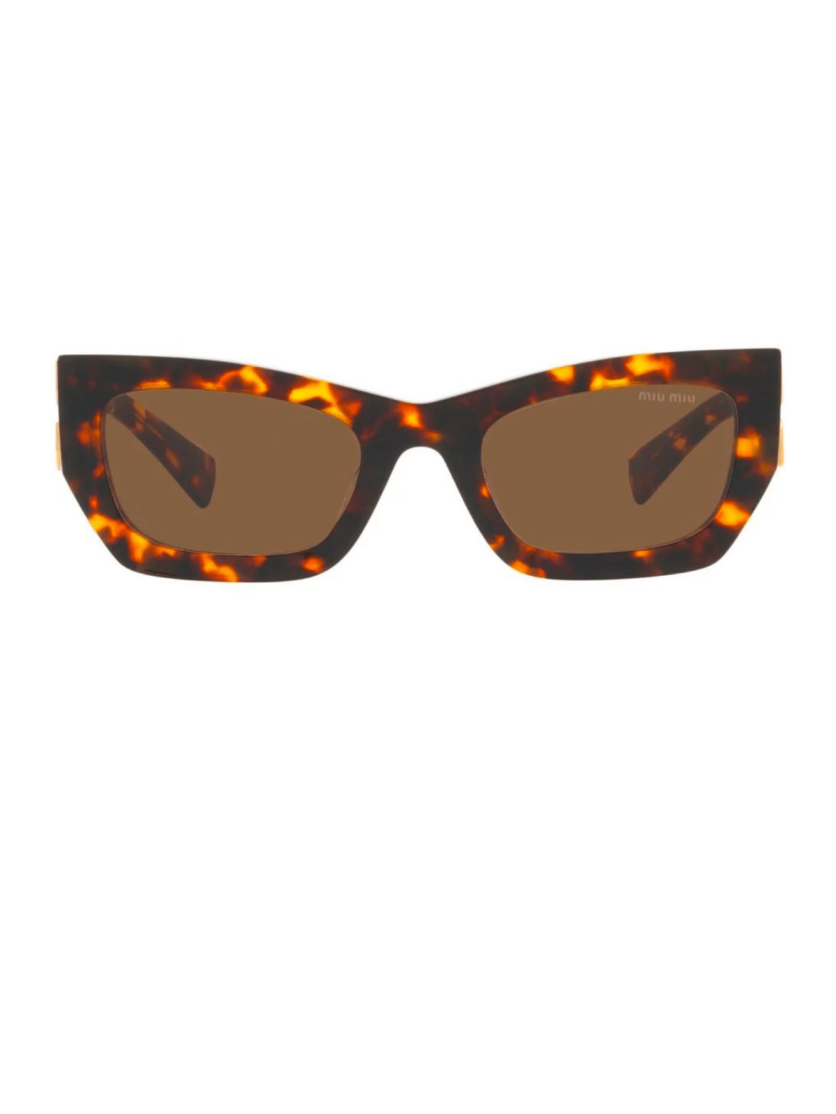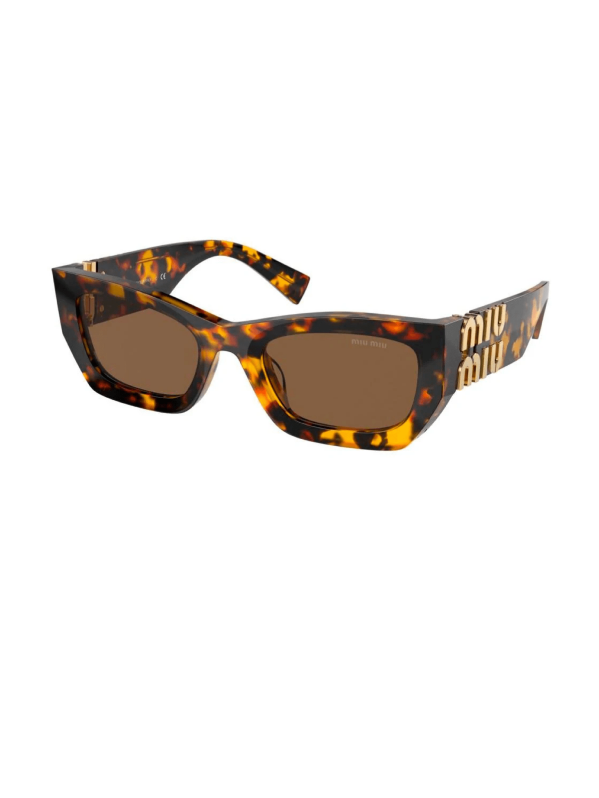 Модель классической формы, с вытянутыми углами по бокам, с массивными скобками и лого бренда на них. В роговом цвете оправы с коричневой оинзой.