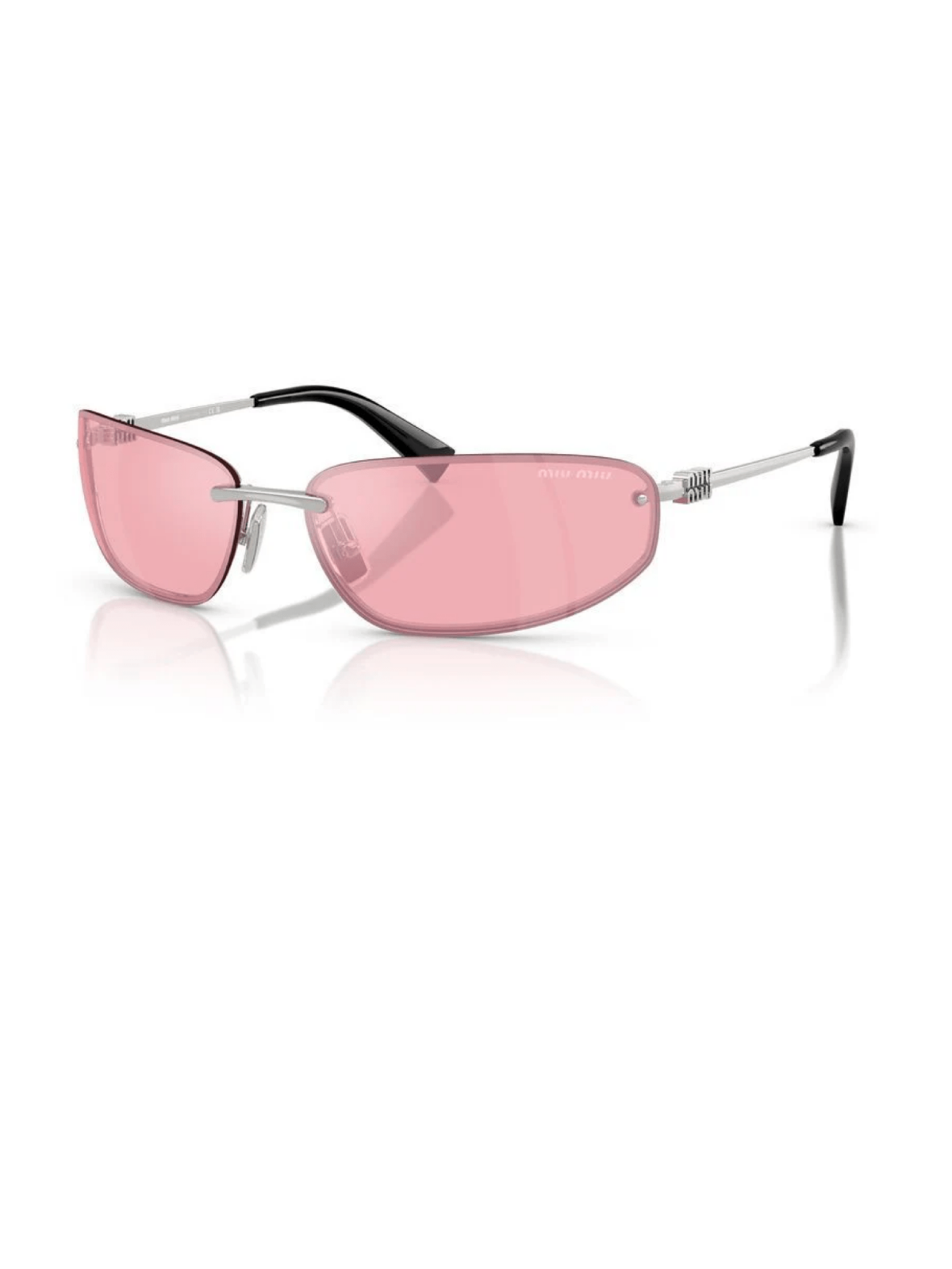 Модель в форме маски от Miu Miu с розовой, зеркальной линзой.