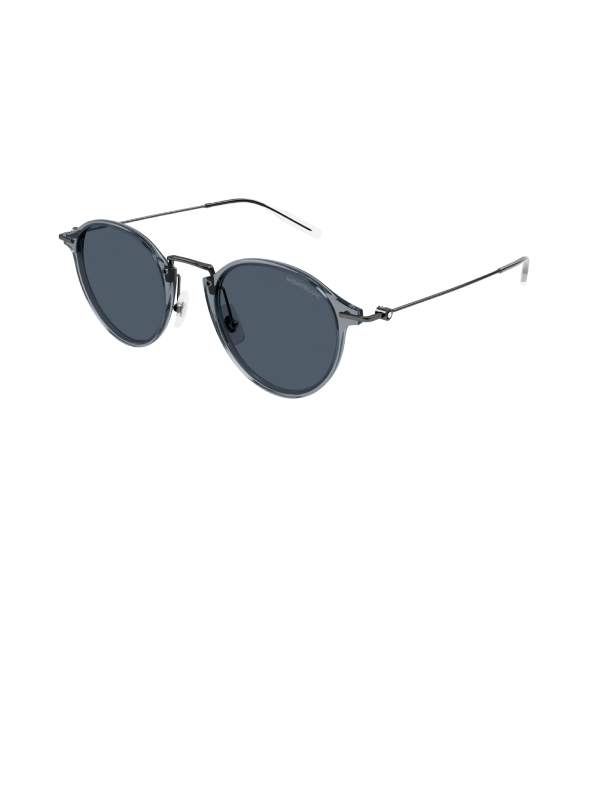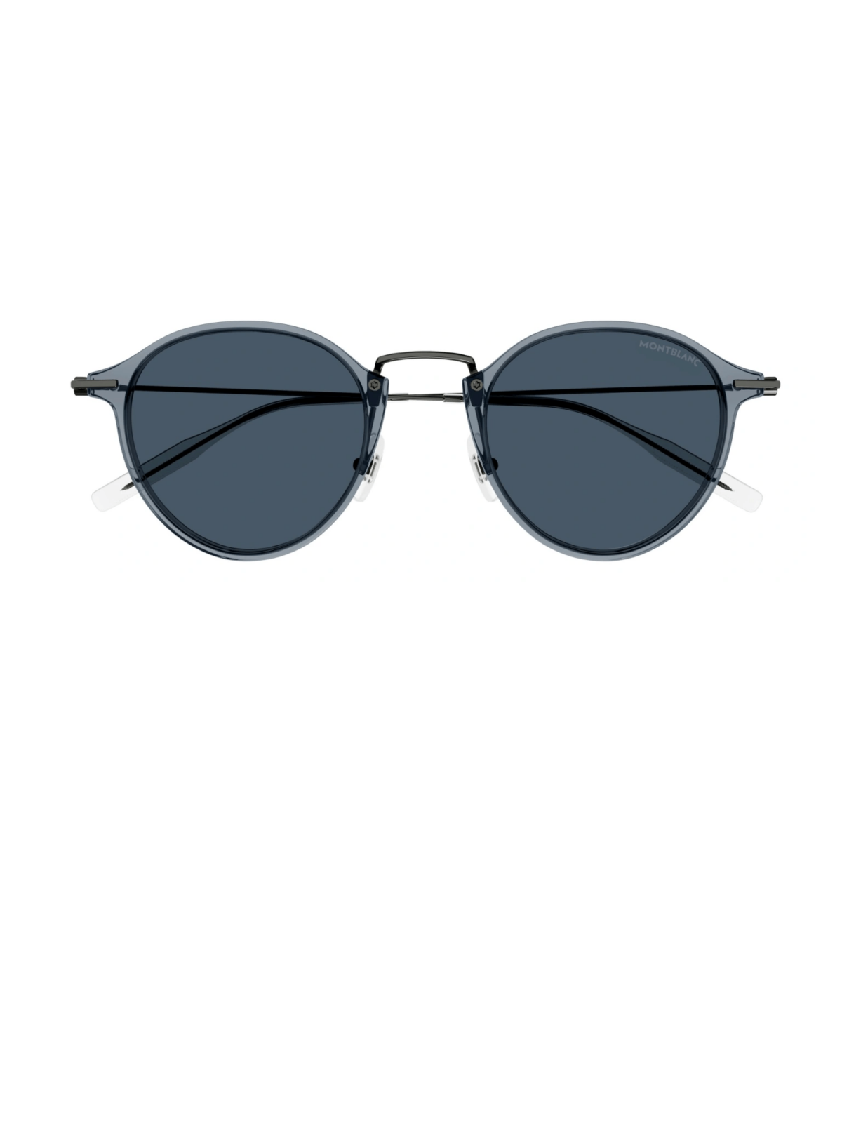 Модель округлой формы, в тонкой оправе с голубой линзой.