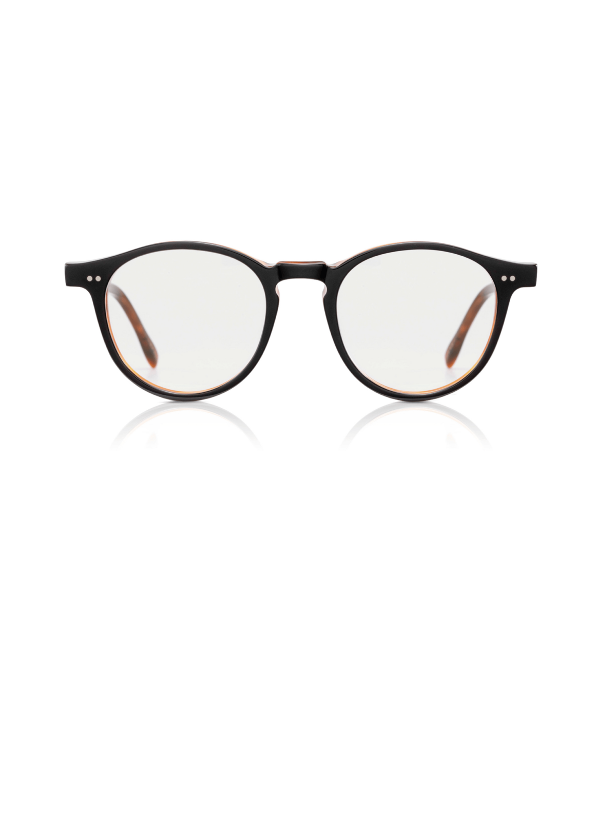 Модель оправы в форме круга в сочетании рогового и черного цвета.