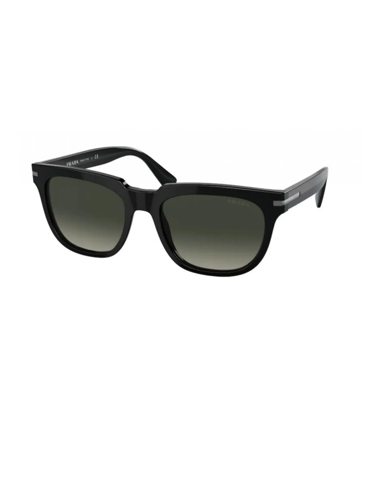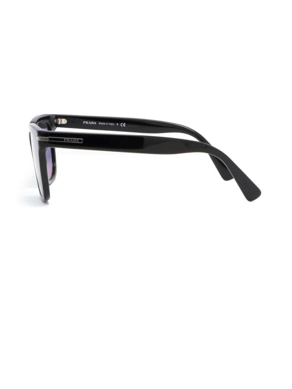 Классическая форма от Prada, в оправе черного цвета с серой градиентной линзой.