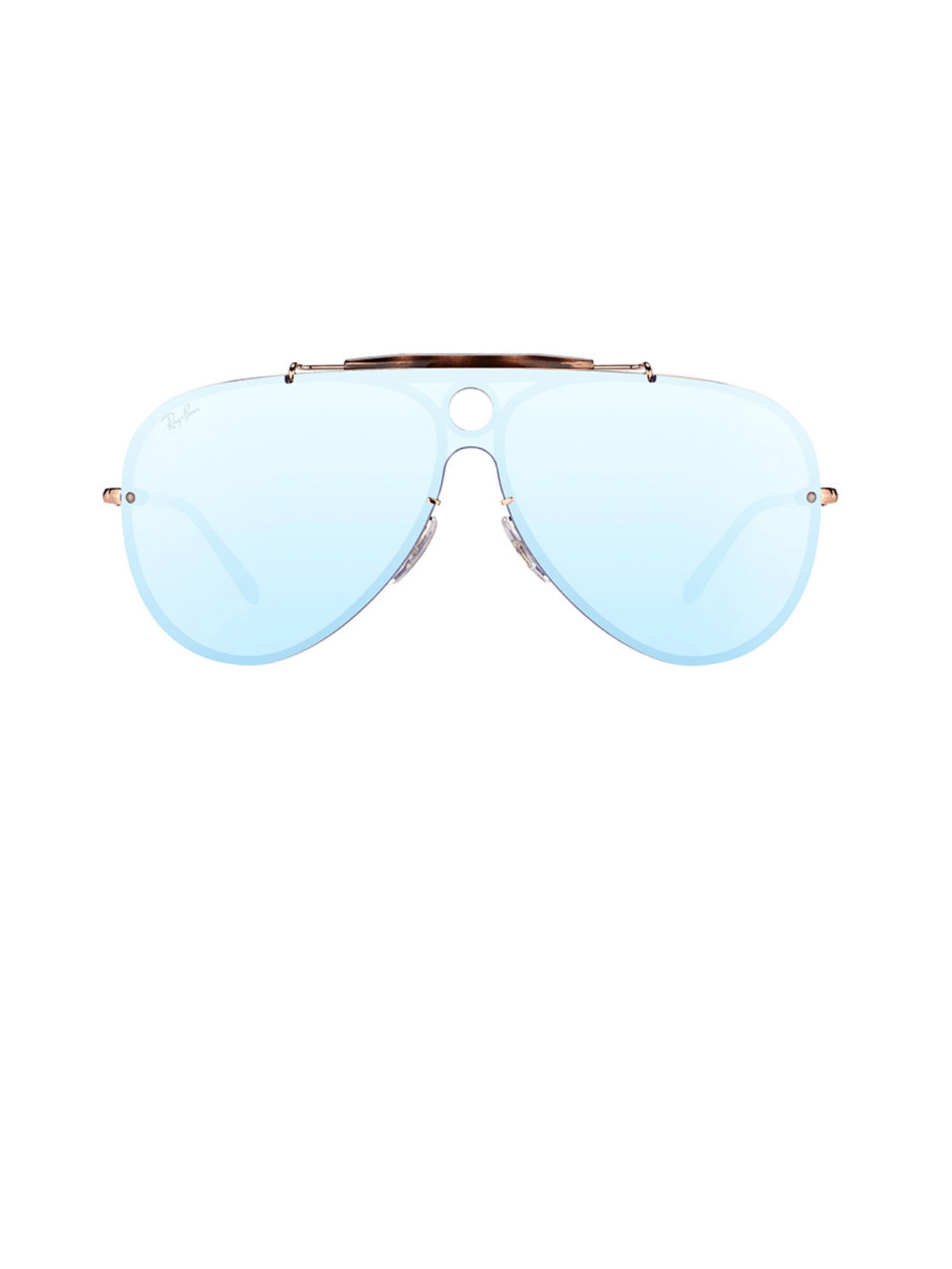 Модель в форме авиатора, в золотом цвете оправы, со стеклянной серой линзой, с зеркальным напылением, зеленого цвета. Модель без оригинальной комплектации.