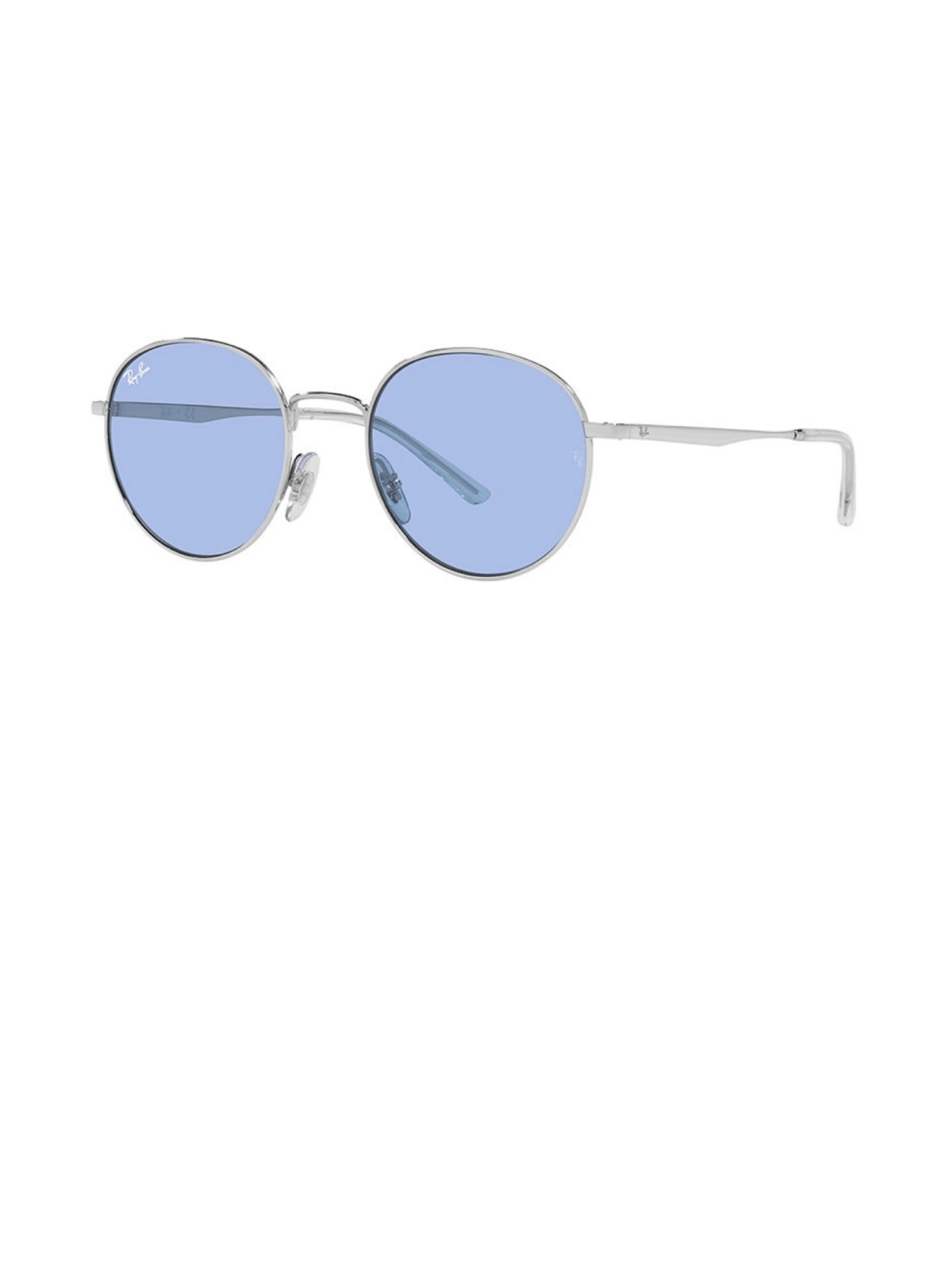 Модель овальной формы в металлической оправе серебряного цвета с прозрачной голубой линзой.