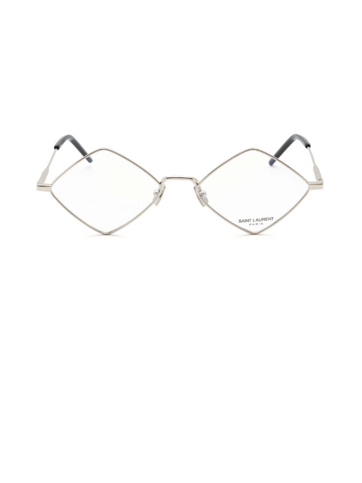 Модель оправы LISA от Saint Laurent в форме ромбов, металлической оправе, серебряного цвета.