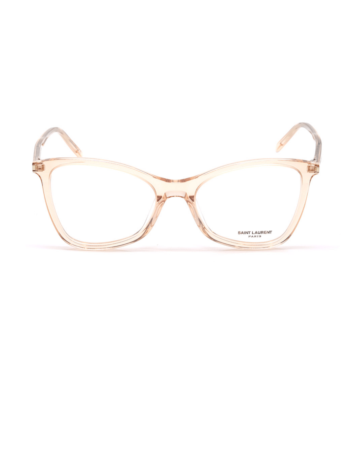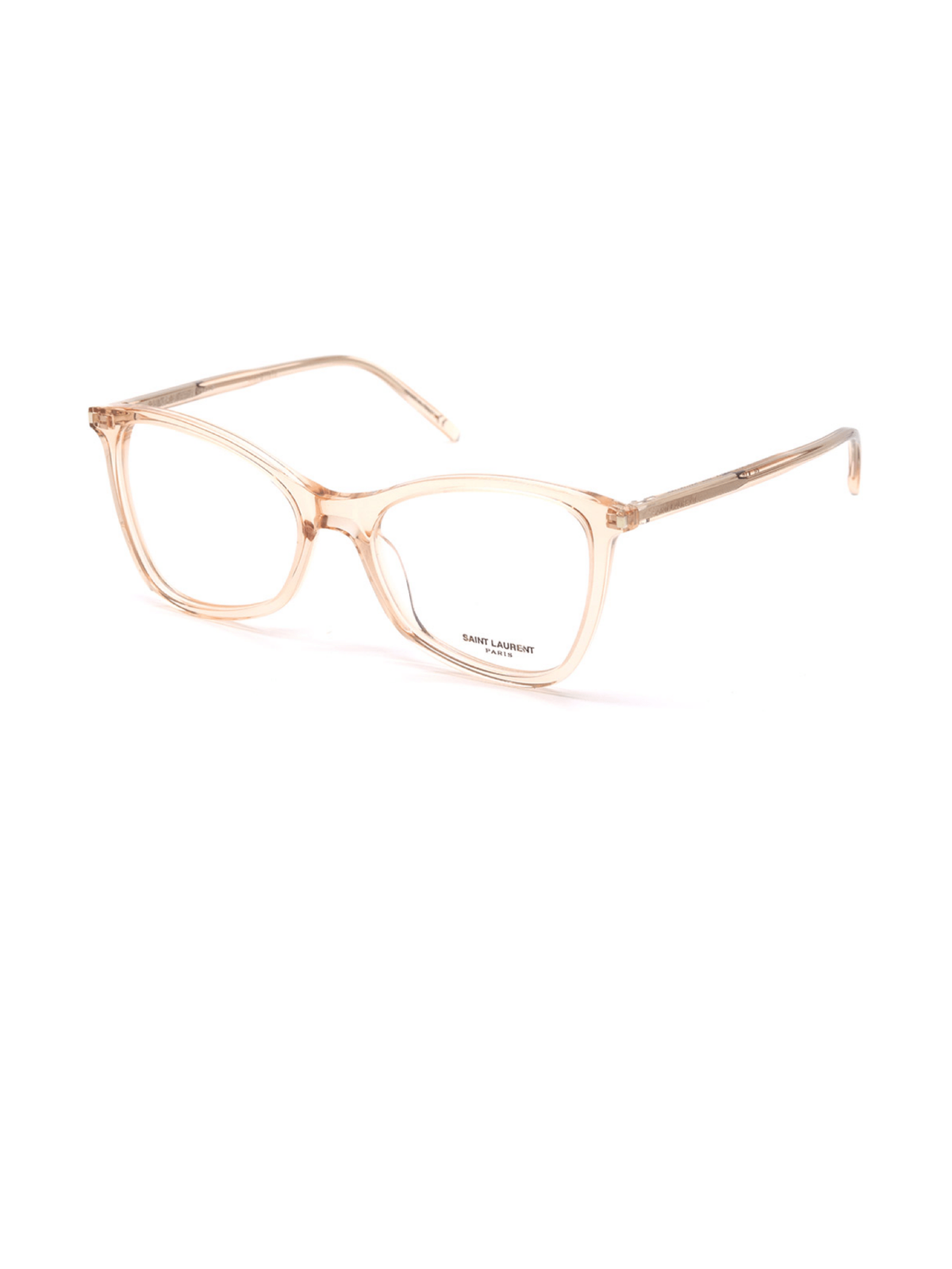 Модель в ацетатной оправе бежевого цвета с демонстрационной линзой.