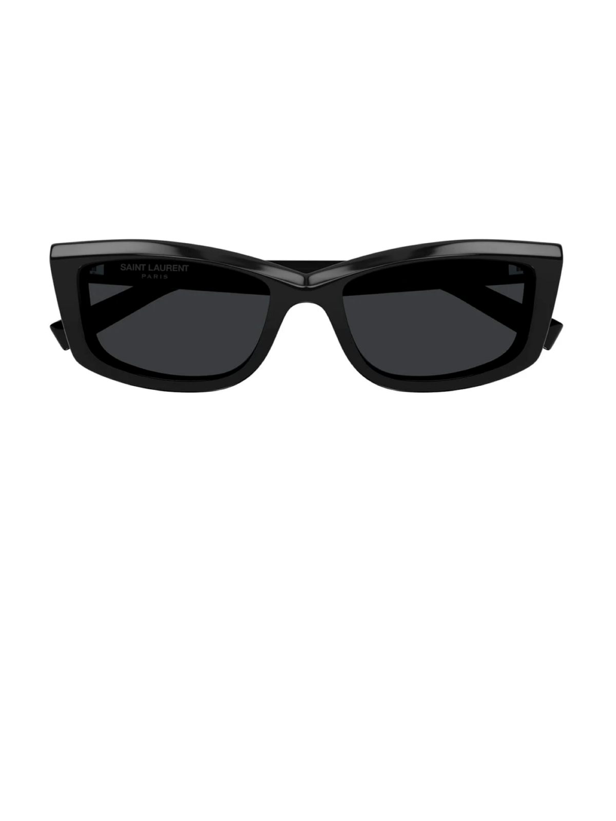 Универсальная классическая модель в форме кошачьего глаза, в оправе черного цвета с серой линзой.