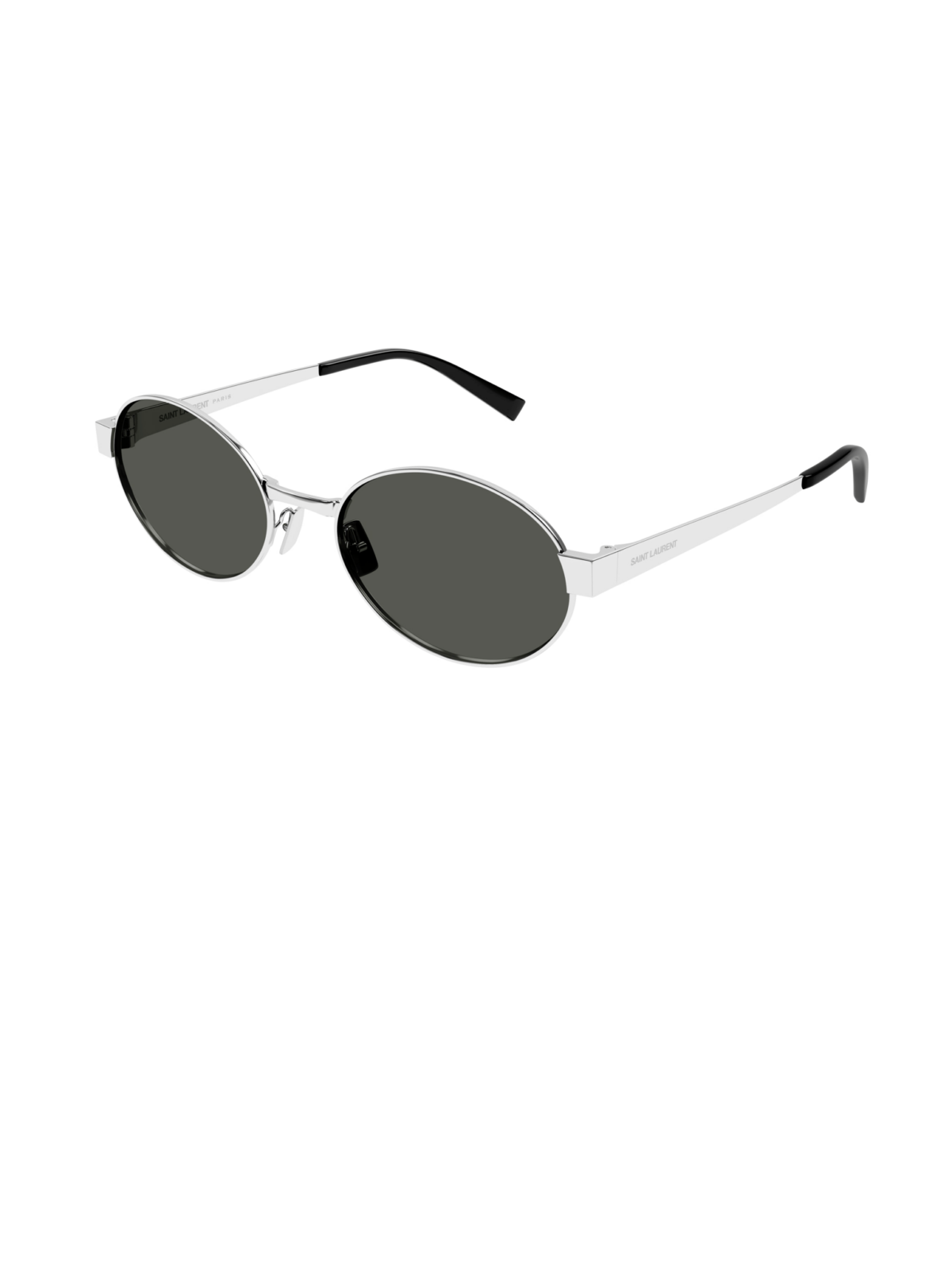 Универсальная классическая модель овальной формы в оправе серебряного цвета с серой линзой.