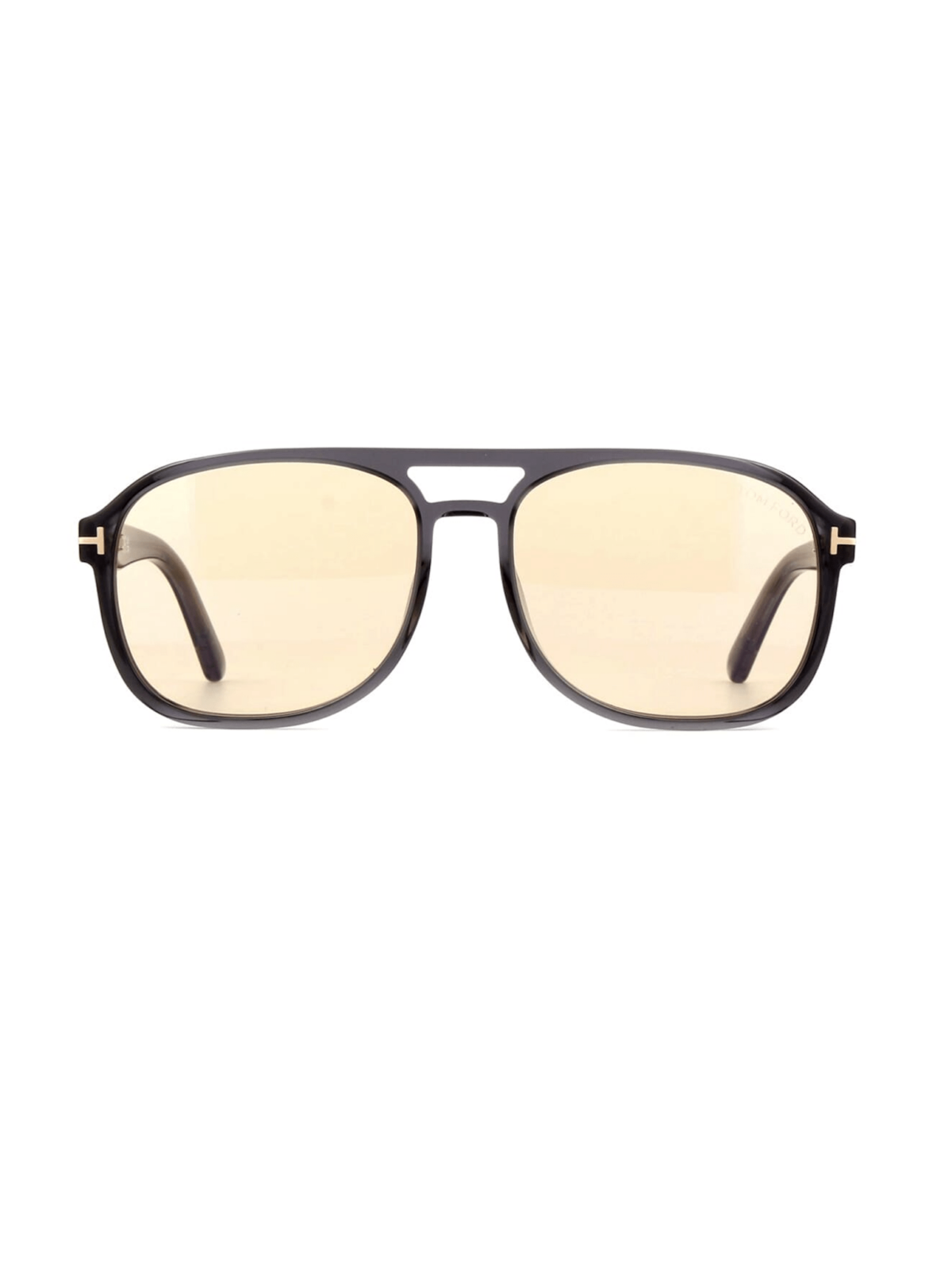 Модель имеет силуэт авиатора с двойной перемычкой. Оправа изготовлена ​​из полупрозрачного дымчатого ацетата оттенка. Линзы фотохромные, светло-бежевого цвета в базовом состоянии автоматически темнеют под воздействием ультрафиолета. На скобках – фирменная Т-деталь Tom Ford.