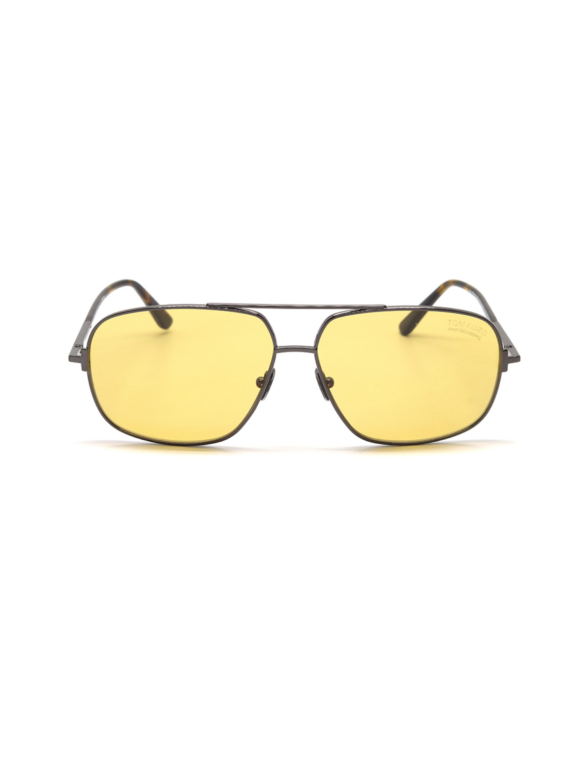 Солнцезащитные очки с классическим авиаторским силуэтом, фотохромными желтыми линзами, которые адаптируются к свету, и металлической глянцевой оправой в оттенке Shiny Gunmetal с тонкими дужками.