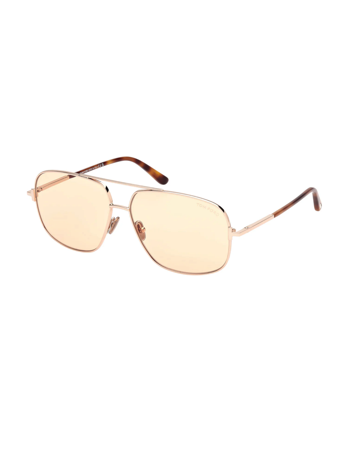 Солнцезащитные очки с классическим авиаторским/navigator силуэтом, фотохромными коричневыми линзами, которые адаптируются к освещению, и металлоконструкцией в глянцевом золотистом/rose‑gold оттенке с аккуратными дужками
