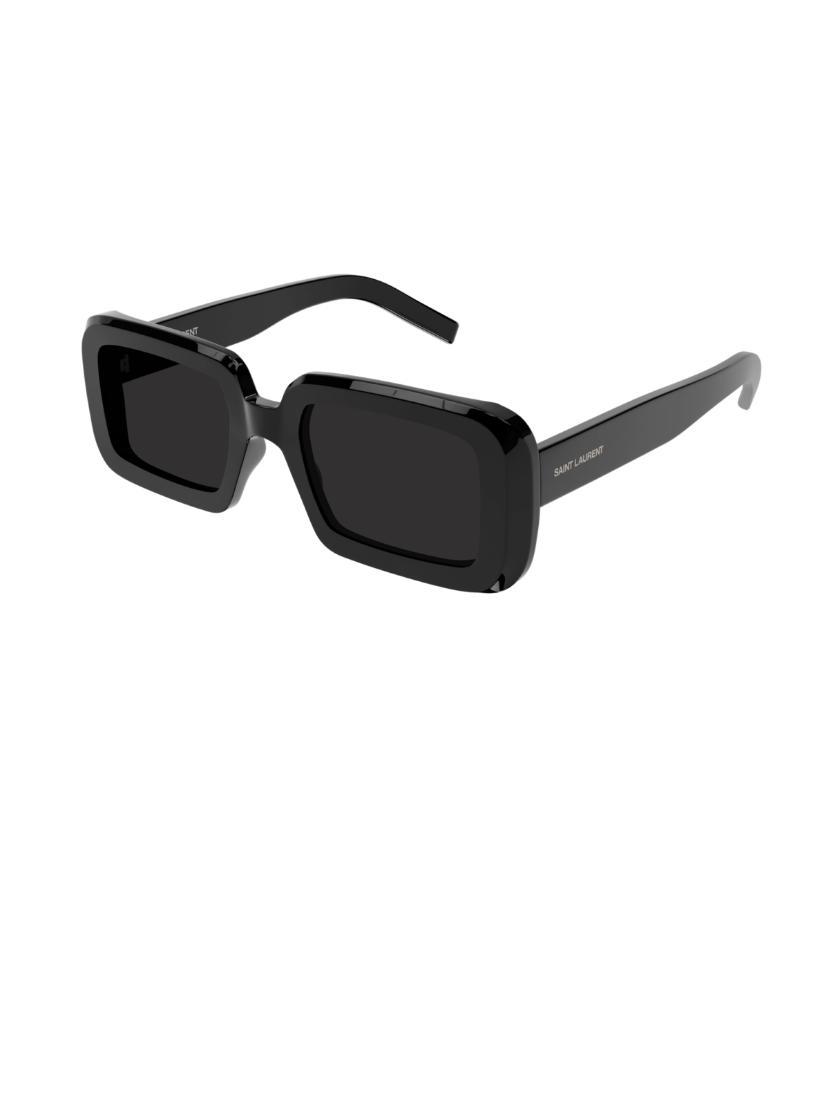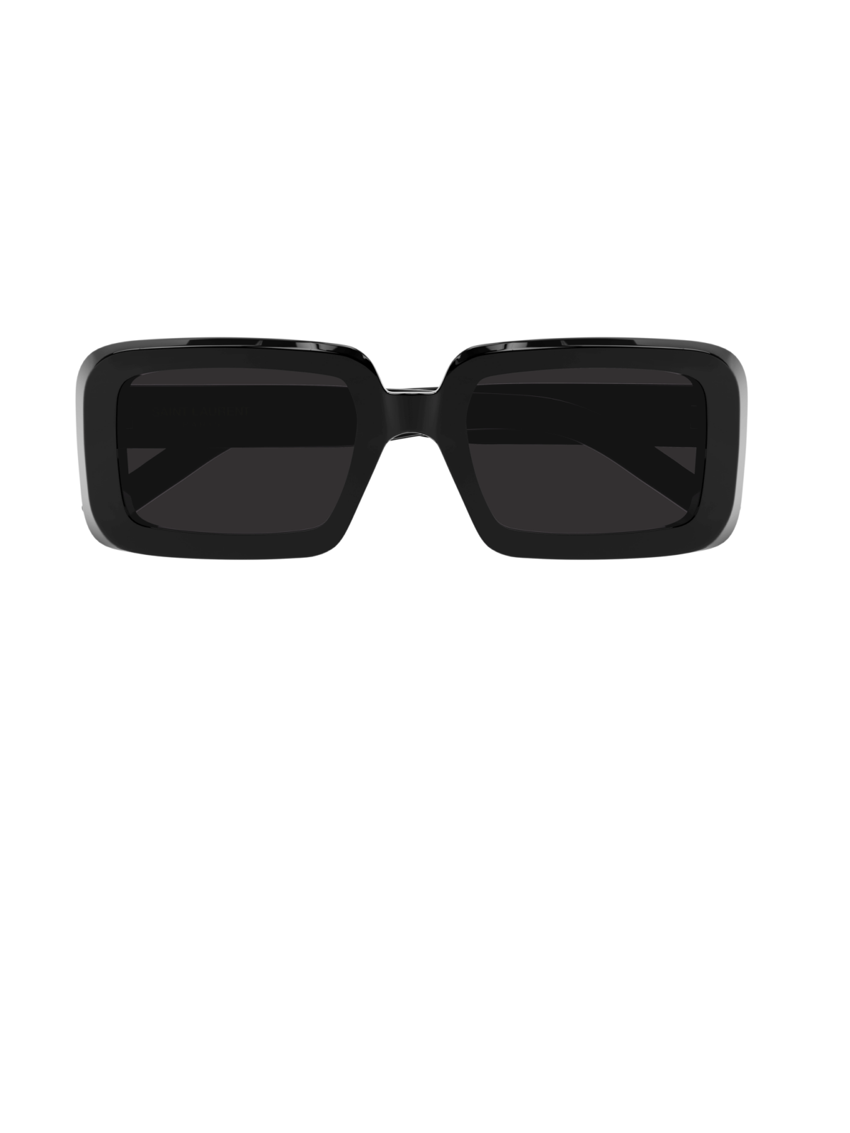 Класична, обємна модель від Saint Laurent в прямокутному силуеті, в оправі чорного кольору, з сірою лінзою.