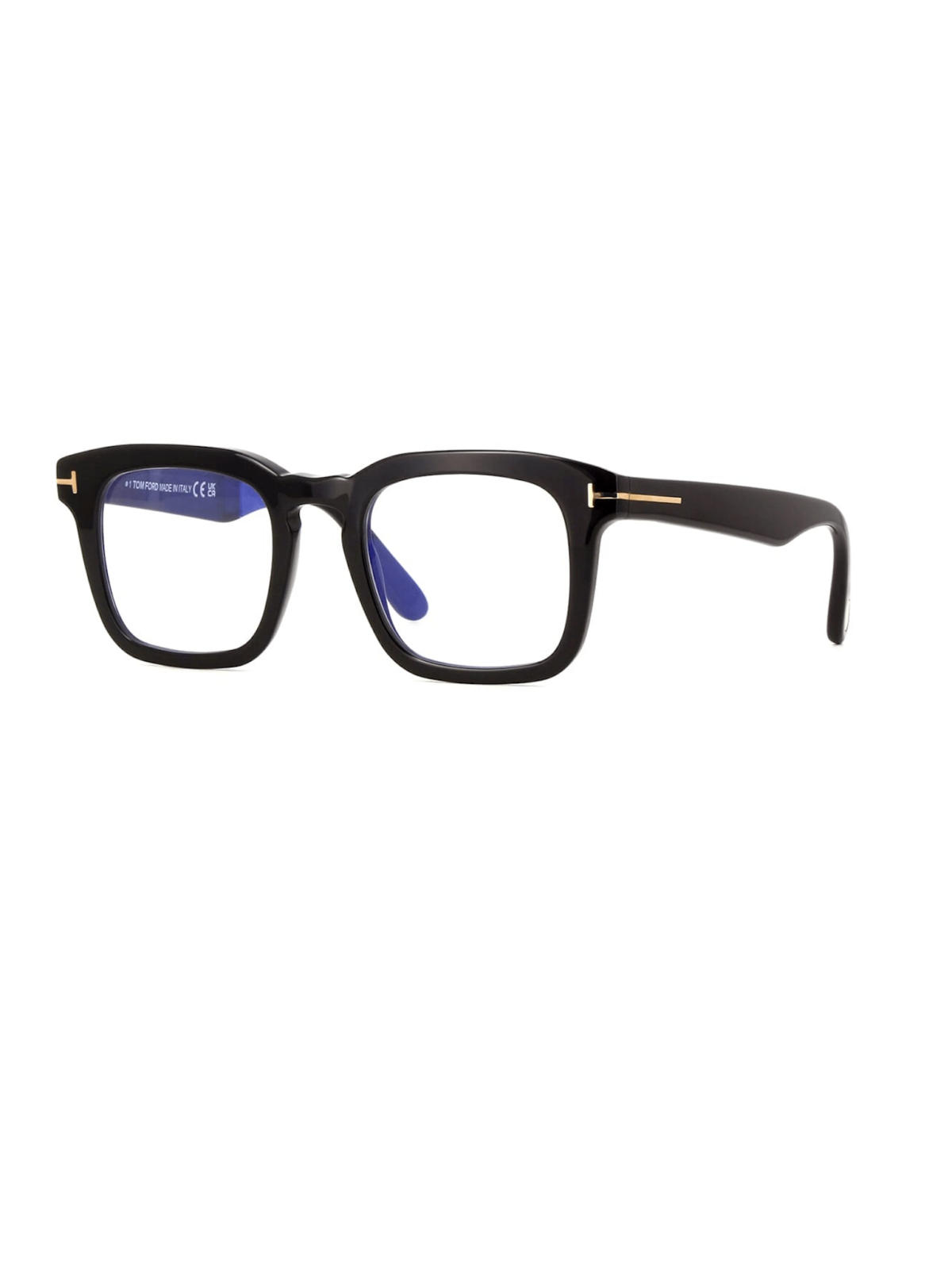 Оправа з масивного чорного ацетату чорного кольору, має класичний квадратний силует та прозорі лінзи.